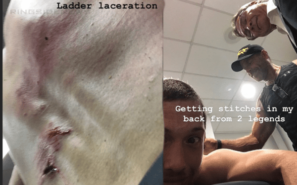 It seems like O’Reilly was in good enough spirits after his ladder laceration. It all comes with the territory as Shawn Michaels should know as he paid O’Reilly a visit to gawk at the sizable hole in Kyle’s back.