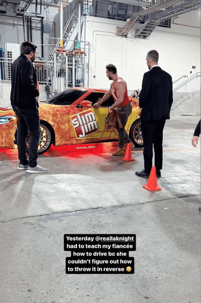 A fan took to their Instagram story and uploaded a photo of LA Knight teaching the fan’s fiancee how to drive, as she didn’t know how to drive the car in reverse.