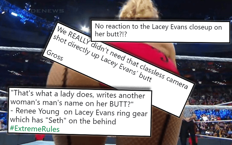 Lacey Evans came out at WWE Extreme Rules and she made it all about her rear end. She posed for the camera and the shot got very close to her as well. This was definitely something you aren’t used to seeing on WWE television nowadays.