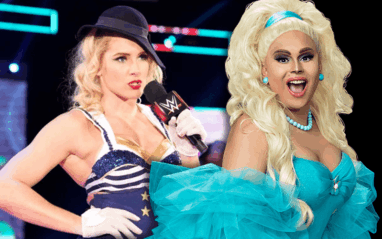 Jaymes Mansfield, who is a rather well-known Drag Queen from RuPaul’s Drag Race fame tweeted out a picture of herself on a ring apron. “Waiting for me and Lacey Evans’ hair vs hair match like…” was her caption.