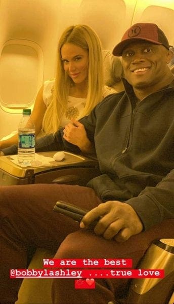 Now it appears that Lana and Bobby Lashley are also traveling together. As the two snuggled on a plane ready to take off, Lana shared a picture of the two on her Instagram story with a caption reading: