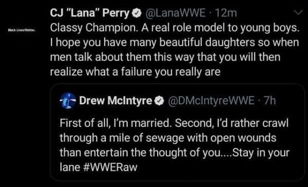 Lana saw McIntyre’s comments and was not impressed by them. She sarcastically called McIntyre “a real role model to young boys” and also said that she hopes McIntyre has a lot of beautiful daughters so that he has to see people talk about them like he did about her.