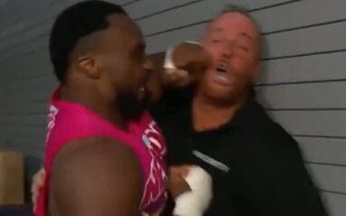 Larry The Security Guard likes to play for both sides. He assisted Sheamus in setting up Big E a couple of weeks ago. Then this week he helped Big E out in trapping Sheamus. Big E also didn’t forget about that previous backstabbing so he destroyed Larry for his troubles.