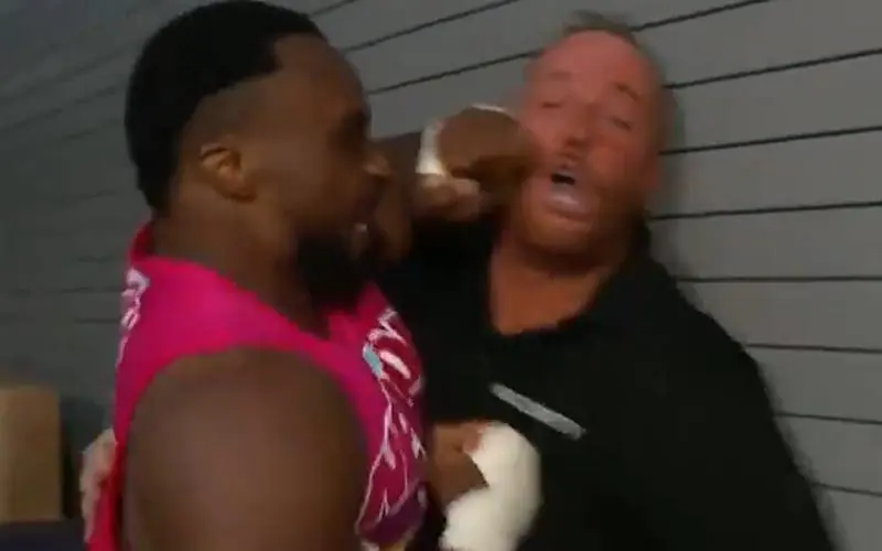 Adam Pearce isn’t an “authority figure” on WWE television, but he is representing management. Vince McMahon took away all authority figures when he made fans the real authority. Pearce still had an update on poor Larry’s condition following Big E’s brutal assault.