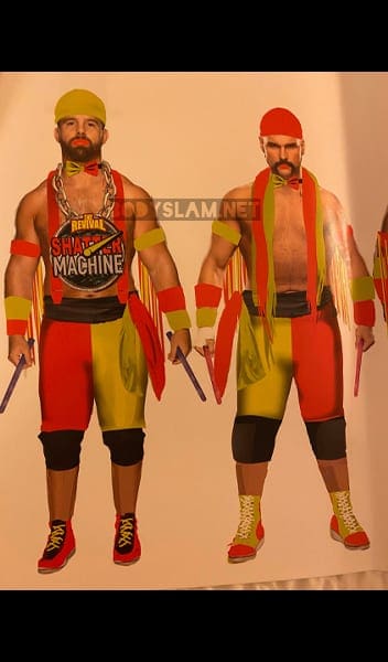 These sketches of new character attire show The Revival as straight-up clowns. It is quite interesting that WWE went this direction and took the comedy idea so far. They were given to The Revival during their final meeting with WWE.