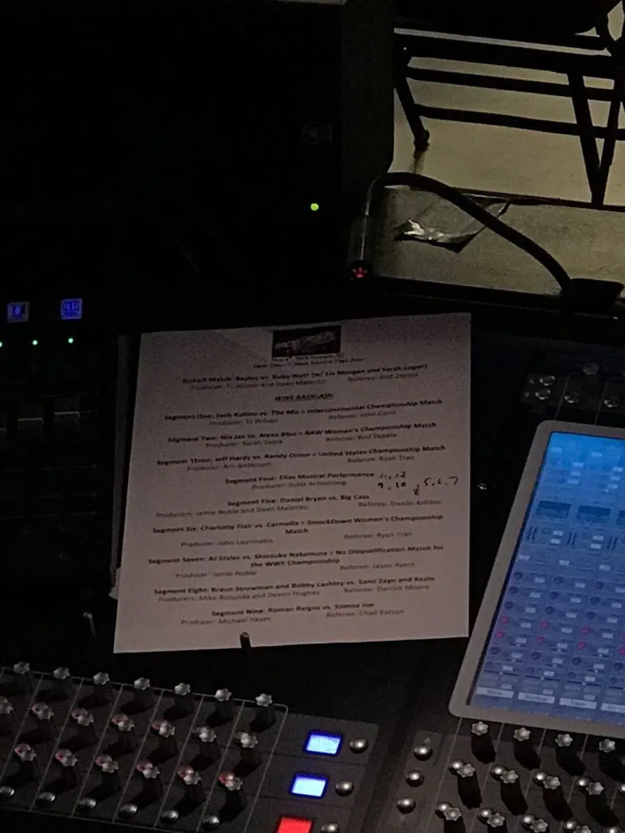 A picture from WWE’s production area has leaked online showing the match order for the Backlash show. You can also see the listed producers of the match as well.