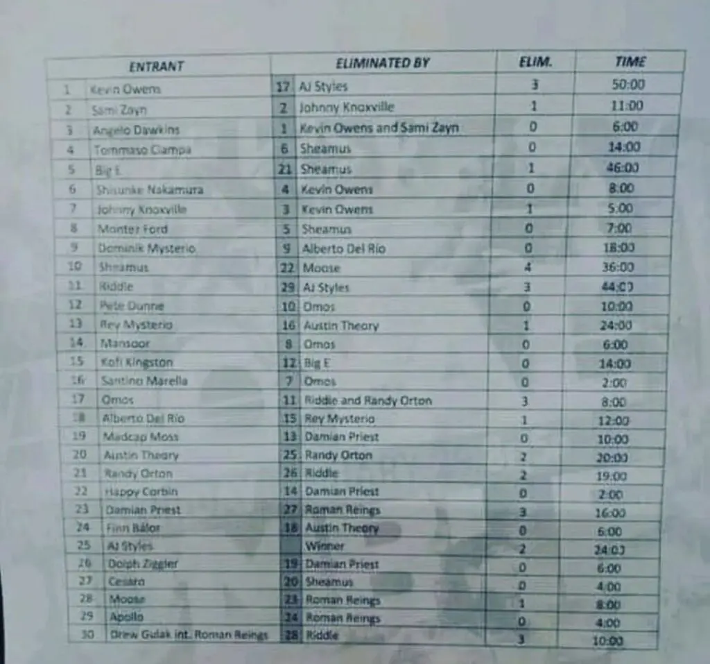 A Royal Rumble chart has been going around for a couple days now and it started to pick up steam. We tried to ignore this at first, but it seems some fans have bought into its legitimacy.