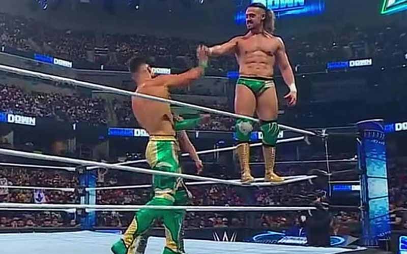 The first qualifier match kicked off the in-ring action on tonight’s edition of SmackDown, as heated rivals Legado Del Fantasma (Angel and Berto) squared off against the LWO (Cruz Del Toro and Joaquin Wilde).