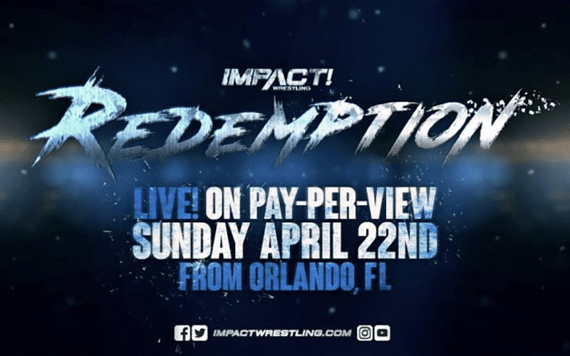 Below is the current card for Impact Wrestling’s Redemption pay-per-view event, which takes place on April 22nd.