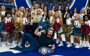 The Indianapolis Colts’ cheerleaders posted a photo of their squad with a couple familiar faces. Drew McIntyre and Liv Morgan made the game, and they were lounging in the photo, ready to strike a casual pose.