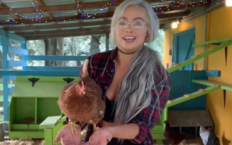 Liv Morgan has a lot going on at the Wonderland Ranch. It is still a work in progress, but Morgan has plans to have an area for turtles, horses, and more animals. She currently has some chickens which was the focus of the video. She also has a pet pig, but he wasn’t around.