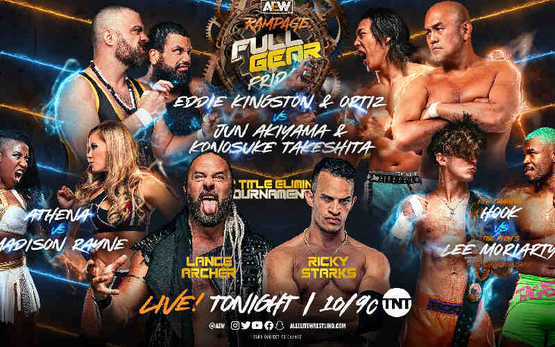 We are a couple of days away from AEW Full Gear. Therefore, tonight’s episode of Rampage will focus on building up toward the PPV. The official match card for the show is as follows: