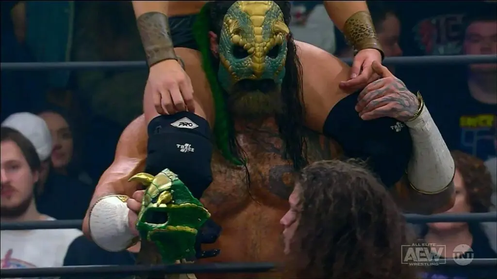 Luchasaurus went out of action due to an injury just before he was set to debut on AEW Dynamite. That speed bump didn’t seem to slow down his motivation and he promised to make his return soon. That happened tonight.