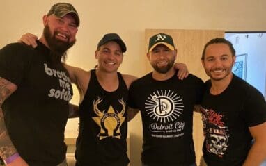 It’s not clear when this photo was taken, but that Brother Me Softly shirt LG is wearing wasn’t available prior to Gallows and Anderson’s time in WWE.