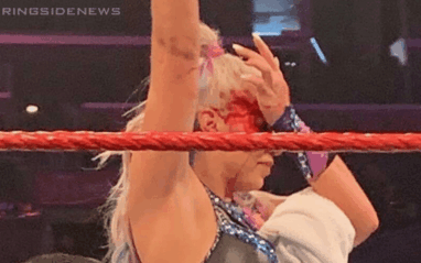 The match was called off after Brooke started bleeding in the ring. As you can see below, things were pretty gory. Hopefully, she’s okay.