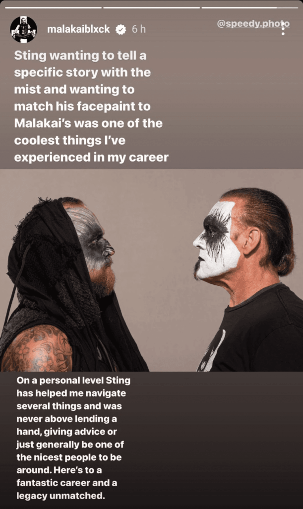 Malakai Black took to his Instagram story and uploaded a photo of himself alongside Sting, as he paid tribute to The Icon by stating how much Sting has helped him navigate so many things.