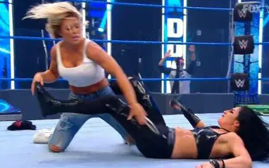 Mandy Rose was jumped by Sonya Deville backstage last week on Friday Night SmackDown. She didn’t stay off television for long, but she looked a bit different this week.