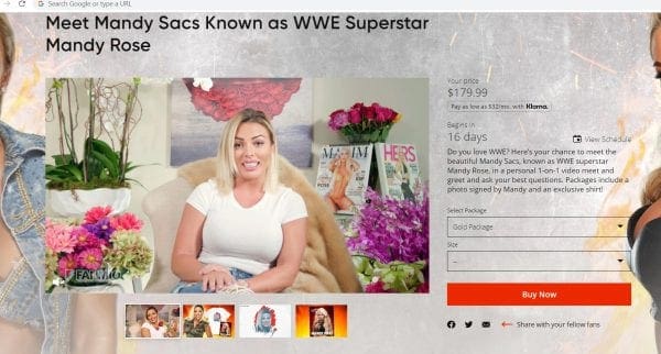 Mandy Rose has two virtual meet and greets scheduled for September with FanMio. The price for the meet and greet ranges from $30 to $180 depending on the package that fans purchase.