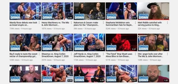 As of this writing, Mandy Rose debuting her new hairdo on SmackDown has 749,237 views. That clip of the Golden Goddess taking out Deville is currently the highest viewed video from last night’s show. The Retribution invasion got 621,395 views.