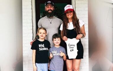 The adorable video then panned out to the children holding an even smaller shirt that said “Coming Soon,” with baby footprints. It ended with the whole family in the frame, as Kannellis announced she and Mike Bennett are expecting their third child together, as she said, “We’ve been keeping a secret…”
