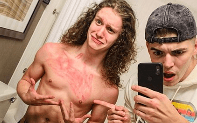 His chest was wrecked after the match as Sammy Guevara seemed mighty happy to pose next to Stunt’s destroyed sternum.