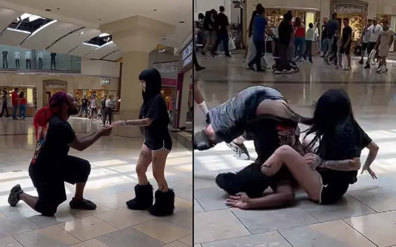 A user on X, Lord A Drean, who dubs himself the “Hottest Indie Wrestler Rapper Right Now”, shared his proposal attempt. After popping the question in a mall, his partner, Malicious China, responded with a Canadian Destroyer and an RKO, something that WWE superstar Tommaso Ciampa has also been trying on his end to execute himself as part of his funny antics.