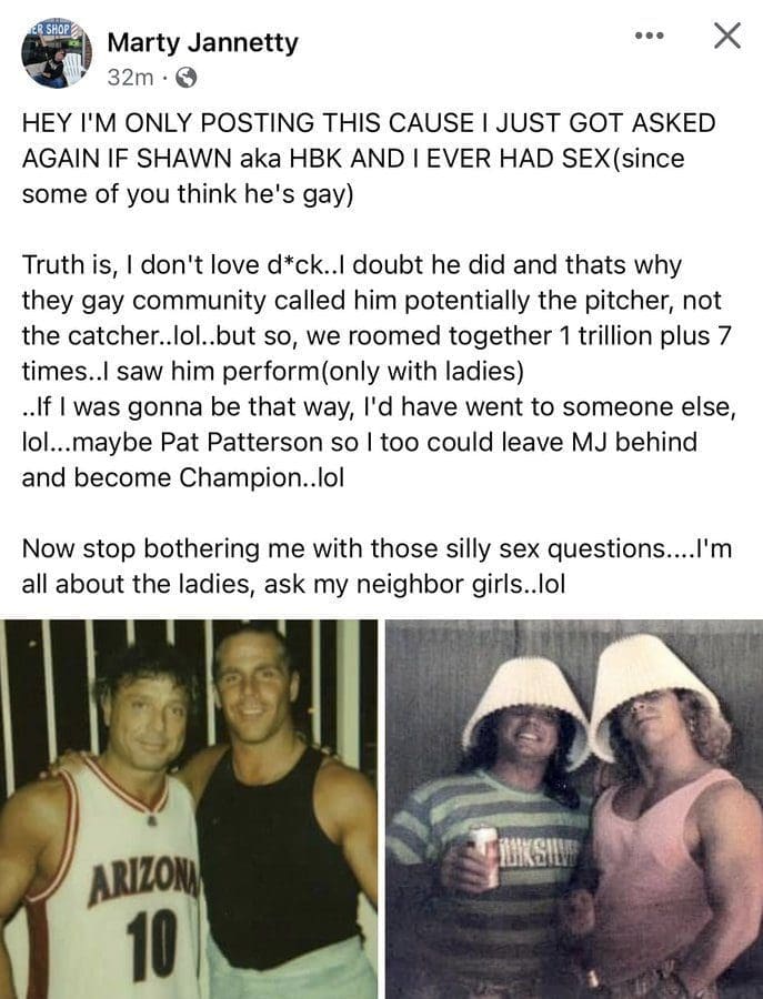 Marty Jannetty followed that up with another post, one that was a bit shorter, but it had quite a message: “I feel gay…but I’m pretty sure I like women..lol””