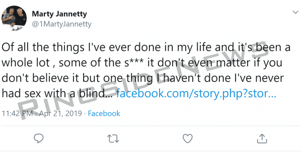 It should be noted that Marty Jannetty has since deleted this Facebook message, but it still doesn’t really explain why he would send it out in the first place. It is great that he is open minded toward sharing the love with people who are visually impaired, but it’s just a strange thing to discuss so openly.