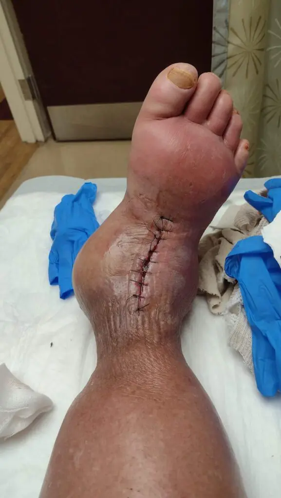 Amazing!!..The PARTY WITH MARTY Podcast train show has been temporarily derailed. A couple weeks ago our show's moderator Radical Addical Addie filmed me walking like nothing to it. This morning my great friend and GREAT World renown ankle specialist Dr Leland aka Lee McCluskey has to walk in the room to see this: (the pics)I already had my head down, to hide the tears..and most gracefully he tried to work through it but his eyes, I saw them, they were glassed over..I'm so sorry Lee, I won't give up..basically, the sepsis crap was beat but cultivated into a new virus..BUT, the silver lined cloud, he put me on a new kinda antibiotic that he feels will knock it out in no time...