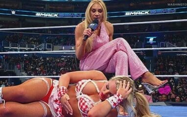 That’s when Charlotte Flair made her entrance. The Queen walked straight to the ring, stood over Stratton, and delivered her WrestleMania challenge with a smirk. “Sit up if you can, Tiffy,” Flair mocked before making it official: “The Queen chooses you. I’ll see you at WrestleMania.”