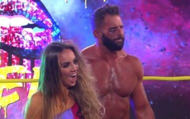 At GCW’s Blood on the Hills event, Matt Cardona and his wife Chelsea Green square off against Effy and Allie Katch. After an intense match that also featured some obscene spots, Cardona and Green ended up losing.