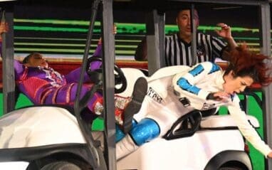 At WWE Crown Jewel, Bianca Belair defended her RAW Women’s Championship against Bayley in a Last Woman Standing Match. During one instance of the match, Bayley was seen on top of a golf cart while Belair drove it.