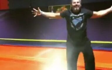 It’s a good thing for Hardy that he had some trampolines around so he could exert some of that energy. As you can see from the video below, he hasn’t lost much when it comes to his balance and ability to land a jump, but all of those hard bumps on a WWE canvas probably didn’t help things.
