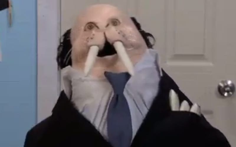 This new friend is a walrus, and he wears a suit. McMahon puppet said it’s “such good sh*t.” As Wyatt said “oh no!” The screen showe