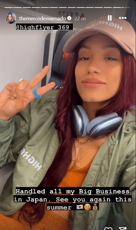 Mercedes Mone took to her Instagram story and uploaded a photo of herself in a plane, confirming she has finished her affairs in Japan, calling it ‘Big Business,’ an obvious tease for her AEW debut on March 13th.