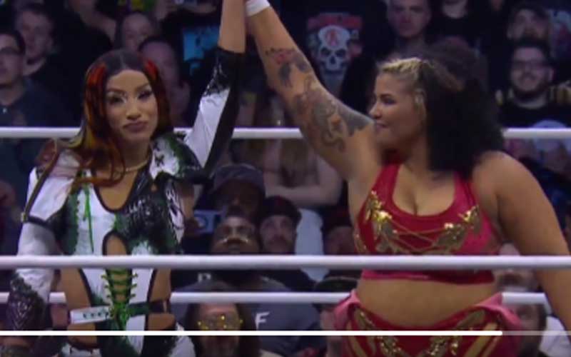 However, as she stood tall to celebrate, the lights went out in the arena and came back to reveal AEW TBS champion Julia Hart staring down her potential next challenger at the ramp. Just then, Hart’s ally Skye Blue launched a sneak attack on Willow with Julia also entering the fray to put her down.