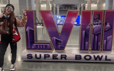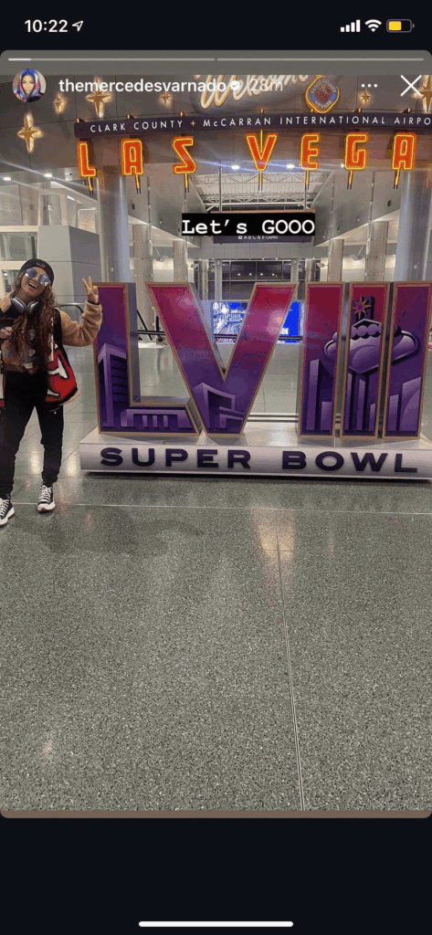 The CEO of Women’s Wrestling took to her Instagram stories to post a picture at the Las Vegas, Nevada Airport. She can be seen posing with the Super Bowl 3D signage installed at the airport, representing the city hosting the event.