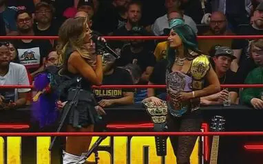 The match was set during the February 8 episode of Collision when Moné crashed Cameron’s live concert segment, leading to a heated back-and-forth between the two.