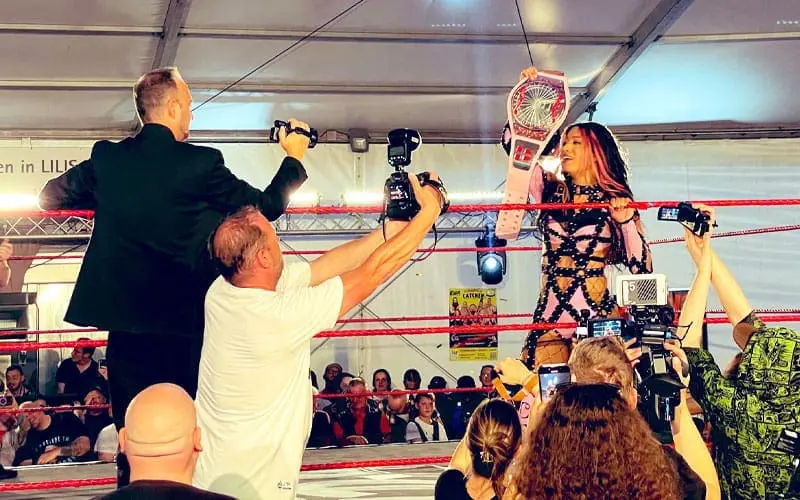 The TBS Champion decided to shock pro wrestling fans as she made an appearance during the Pratercatchen wrestling event in Vienna, Austria. She came out of her car with all of her titles while fans at the wrestling show looked on.