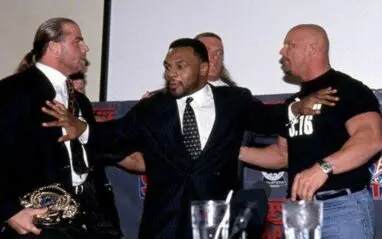 While speaking on the Cheap Heat Productions Podcast, former WWE photographer Tom Buchanan revealed that Mike Tyson was supposed to separate Austin and Michaels during the media event. However, Tyson made a major botch by turning his back at the wrong time.