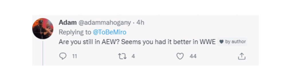 A fan then suggested that Miro had it better in WWE. Interestingly enough, Miro ended up liking that fan’s tweet, seemingly suggesting that he agrees with the fan.