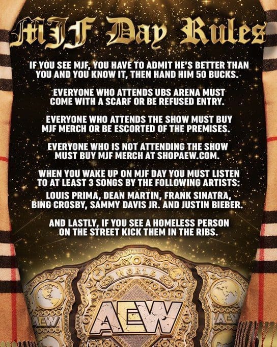 MJF dropped a very interesting list of bullet points which instructs fans how to properly celebrate MJF Day. This list is a bit controversial, but it wouldn’t be MJF Day without upsetting some people.