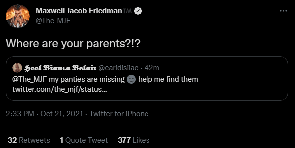 Max had no time for the sexually charged tweet. He responded in only the way MJF can.