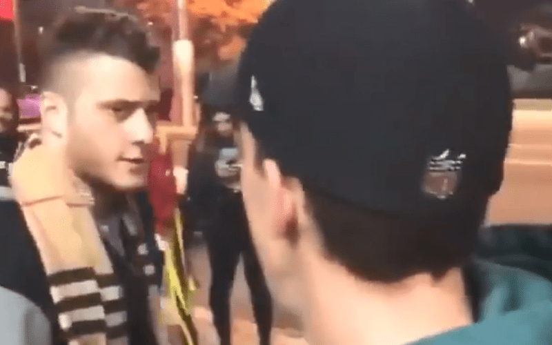 Friedman didn’t say a word as he stopped for a second with one fan who snapped a picture without asking. Then this brave fan moved in for a selfie, but MJF just knocked the hat off this fan’s head instead.