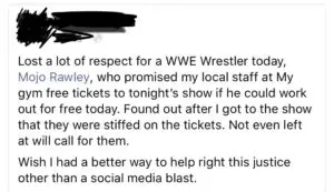 If you hate Mojo Rawley then this is going to be a fun read. Mojo Rawley apparently got access to a gym’s services for free and promised the staff free tickets to a recent WWE show in return.