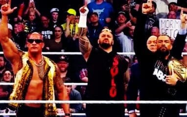 Ringside News has learned that the brains behind The Rock’s scintillating promo segment included Triple H, Roman Reigns, Paul Heyman, The Rock himself, Brian Gewirtz, and Michael Hayes.