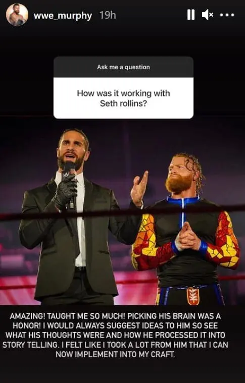 When asked about working with Seth Rollins, Murphy praised the Messiah for everything he was able to teach him. Now Murphy plans on using those tools in his own craft.