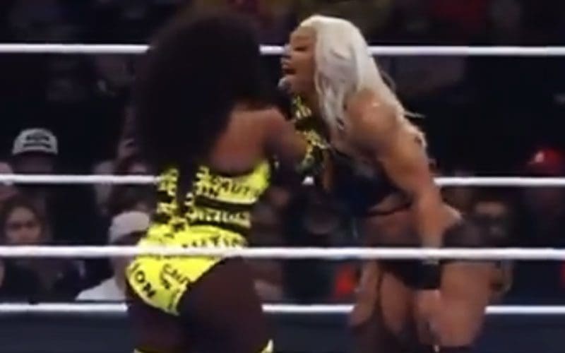 The crowd reaction was instant, but the online fallout hit even harder. Naomi wasted no time reacting once the clip surfaced on Twitter. In one tweet, she warned, “Licking is only for Big Jim 😡⚠️.” She followed that with a much sharper response: “@Jade_Cargill Bit* don’t ever lick me again now I gotta get rabies shot⚠️.”*