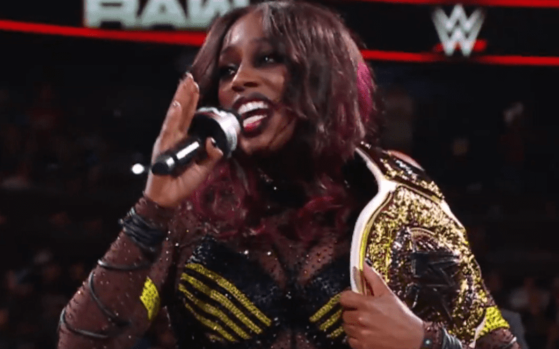 Adam Pearce was in the ring and introduced Naomi to the ring. Naomi made her way to the ring at the close of the show’s second hour, complete with the Women’s Title. She looked happy, but she also wore her street clothes and had something important to say.