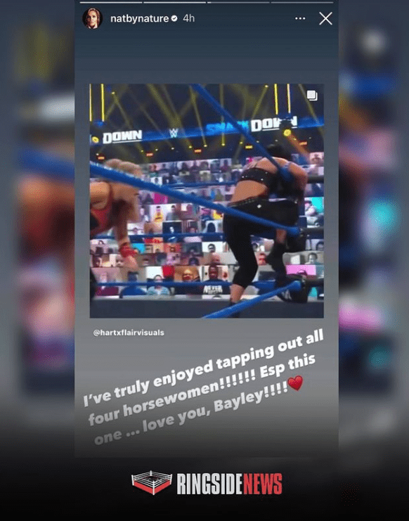 “I truly enjoyed tapping out all four horsewomen!!!!! Esp this one…love you Bayley.”